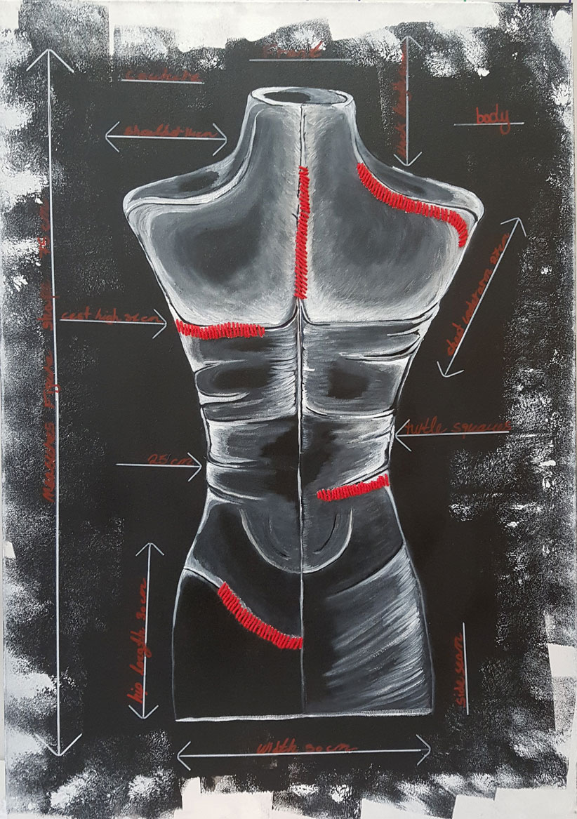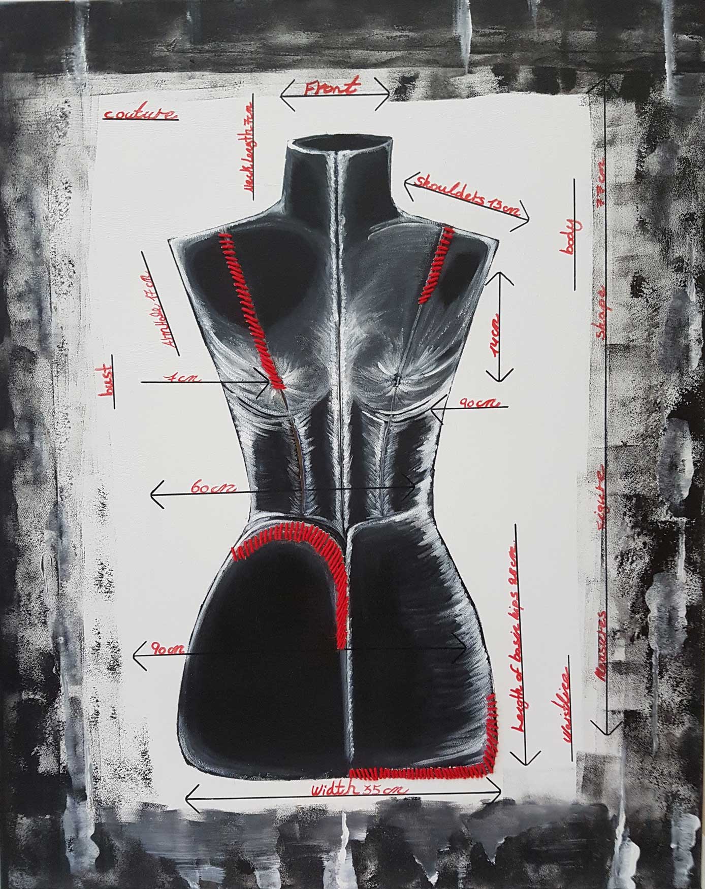 ACRYLIC ON CANVAS AND WOOL STITCHES