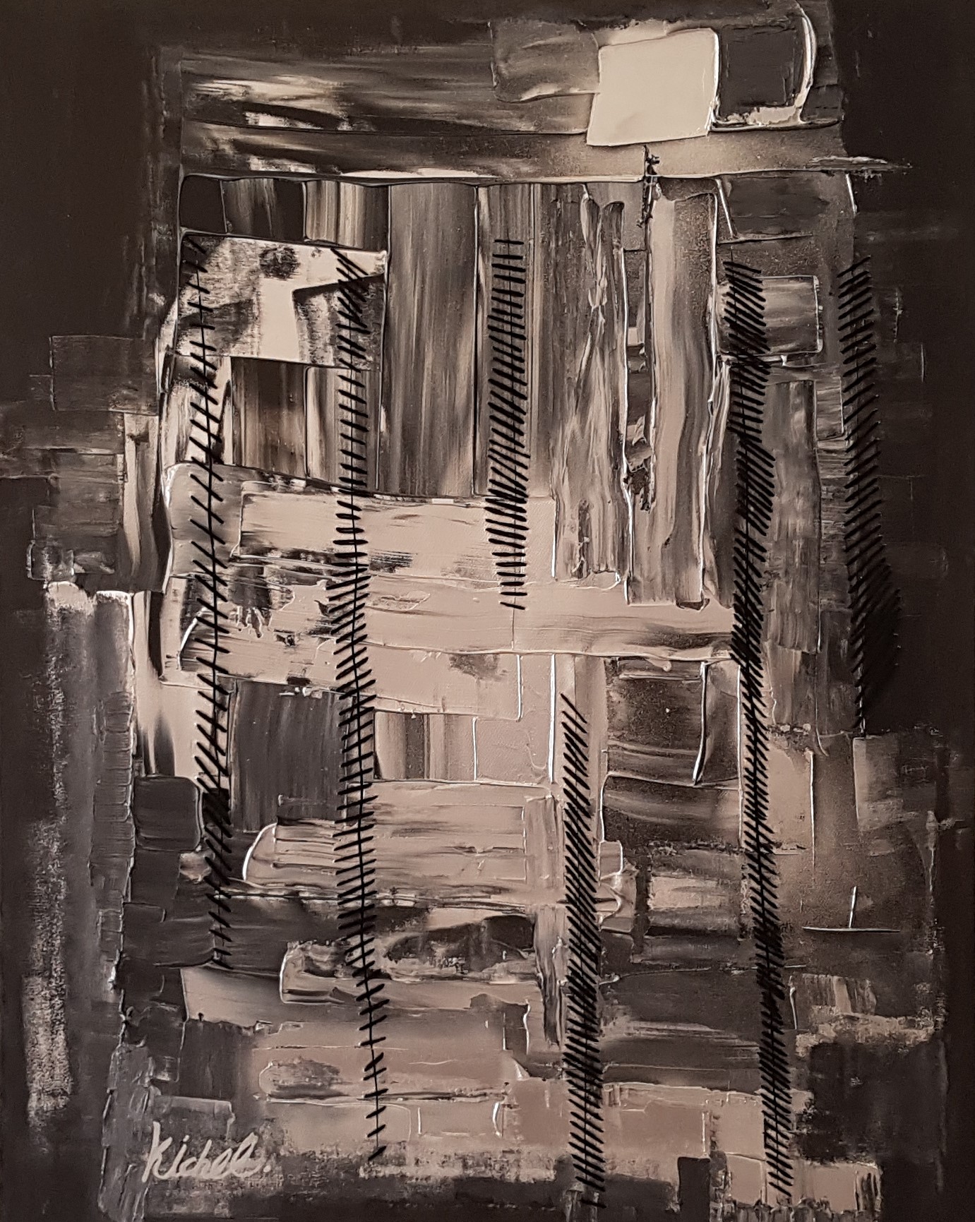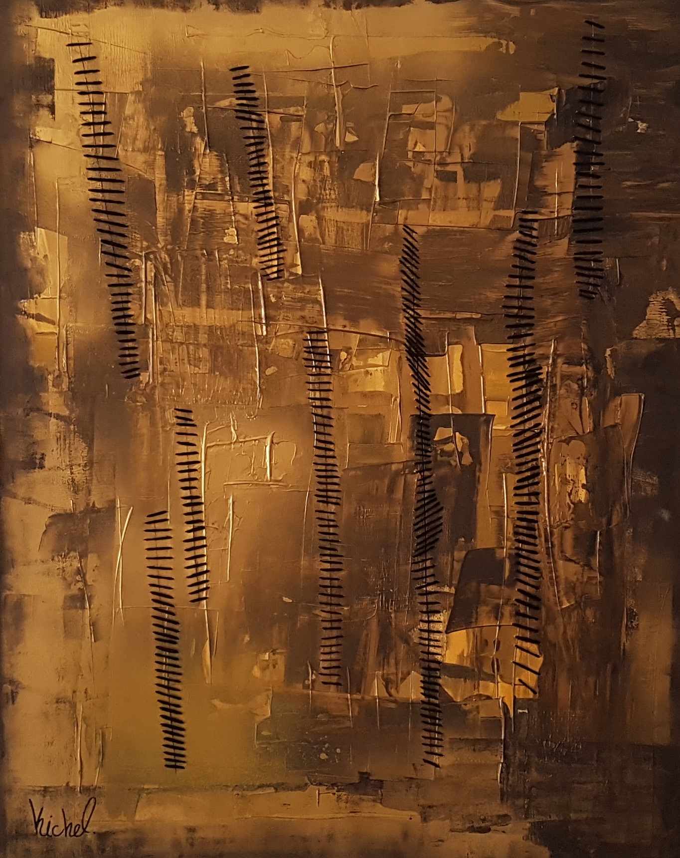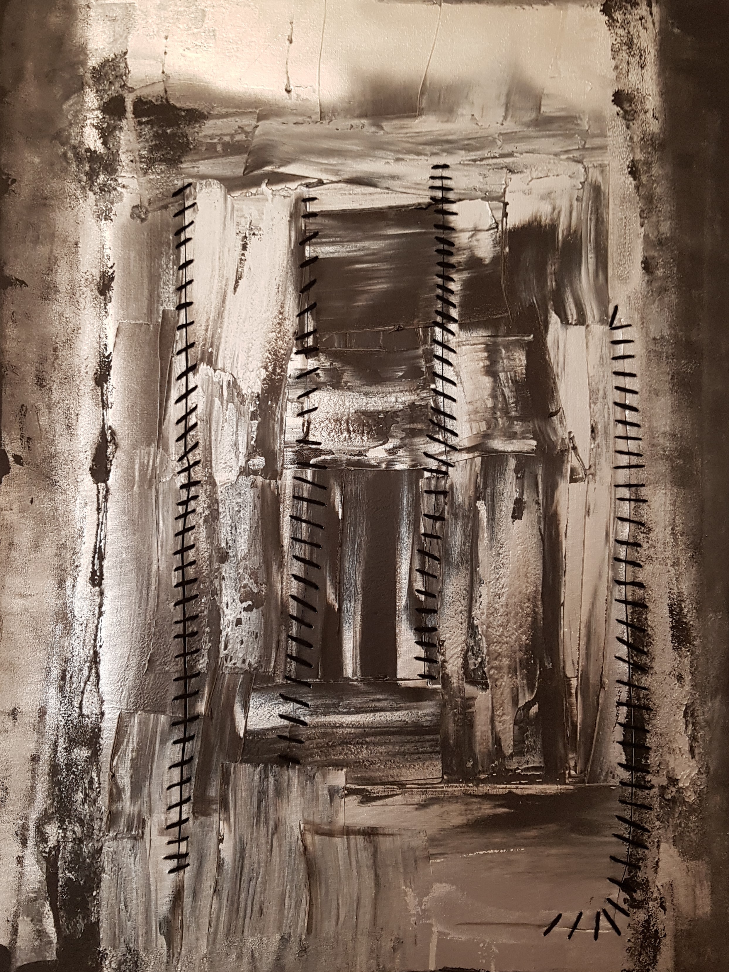 ACRILICO SU TELA CON CUCITURE DI LANA E FILI METALLICI