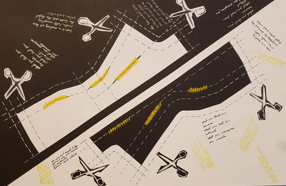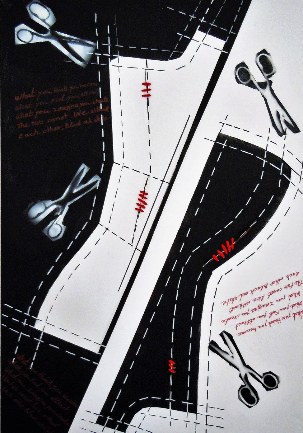 ACRYLIC ON CANVAS AND WOOL STITCHES