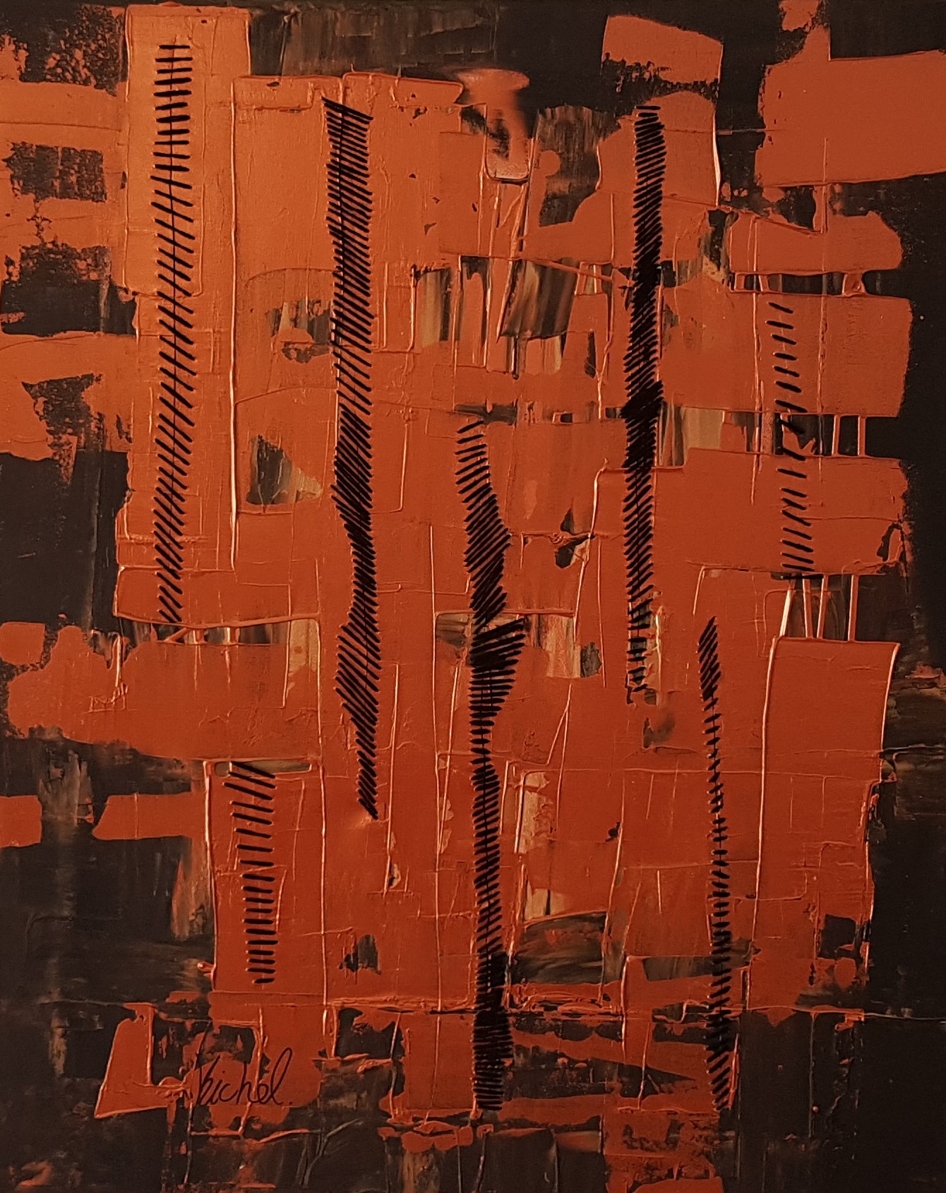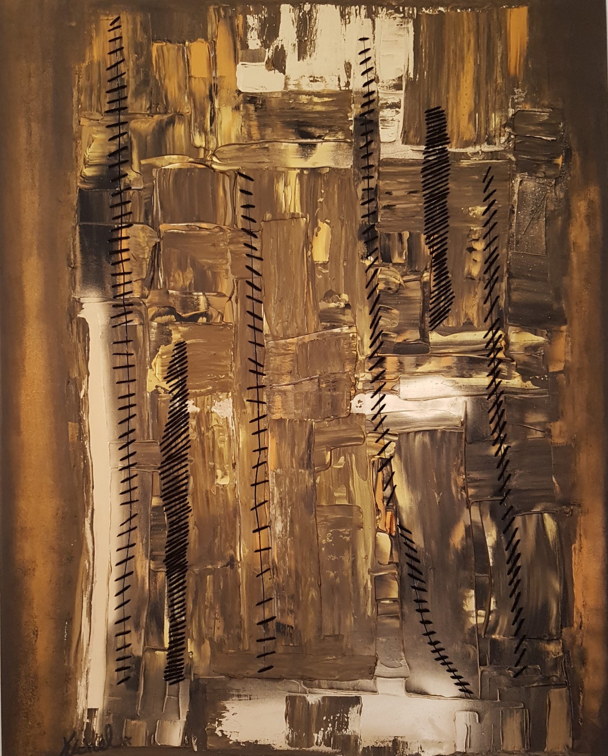 ACRYLIC ON CANVAS WITH WOOL STITCHES