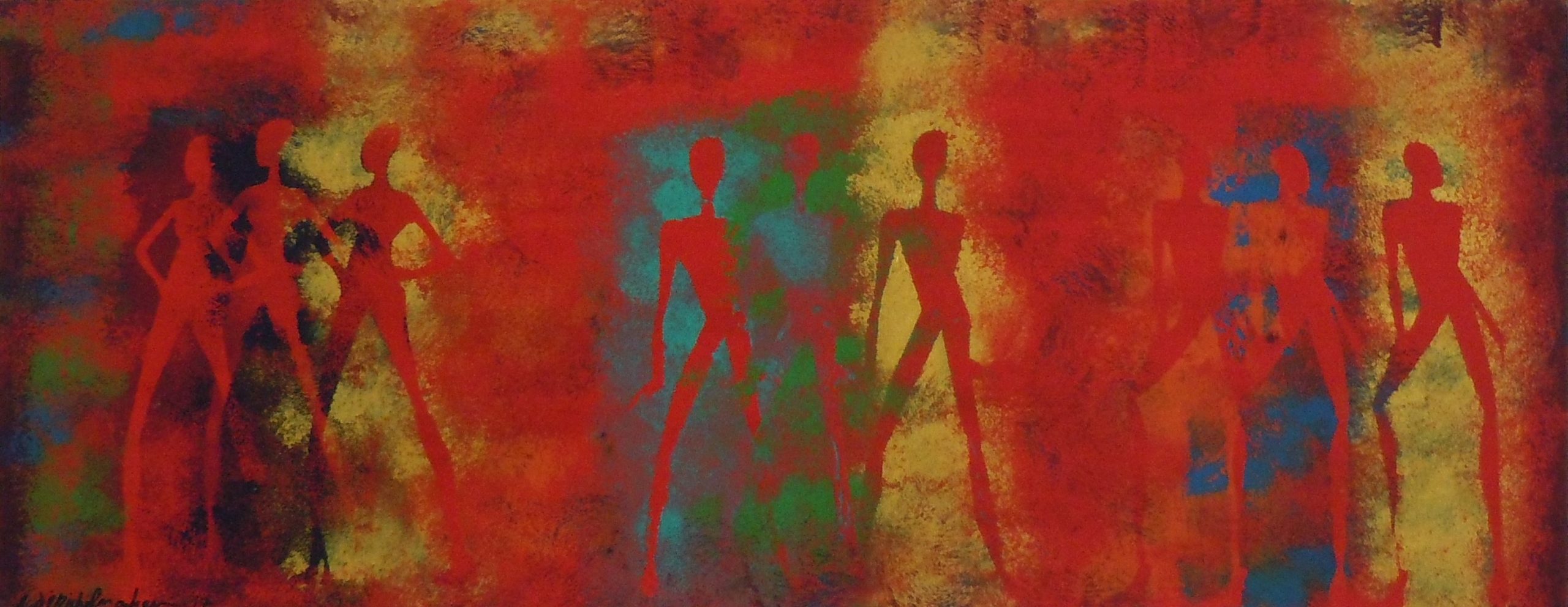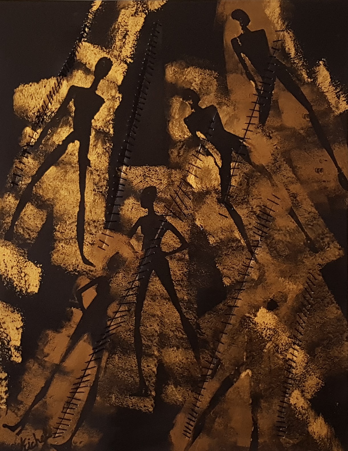 ACRYLIC ON CANVAS WITH WOOL STITCHES